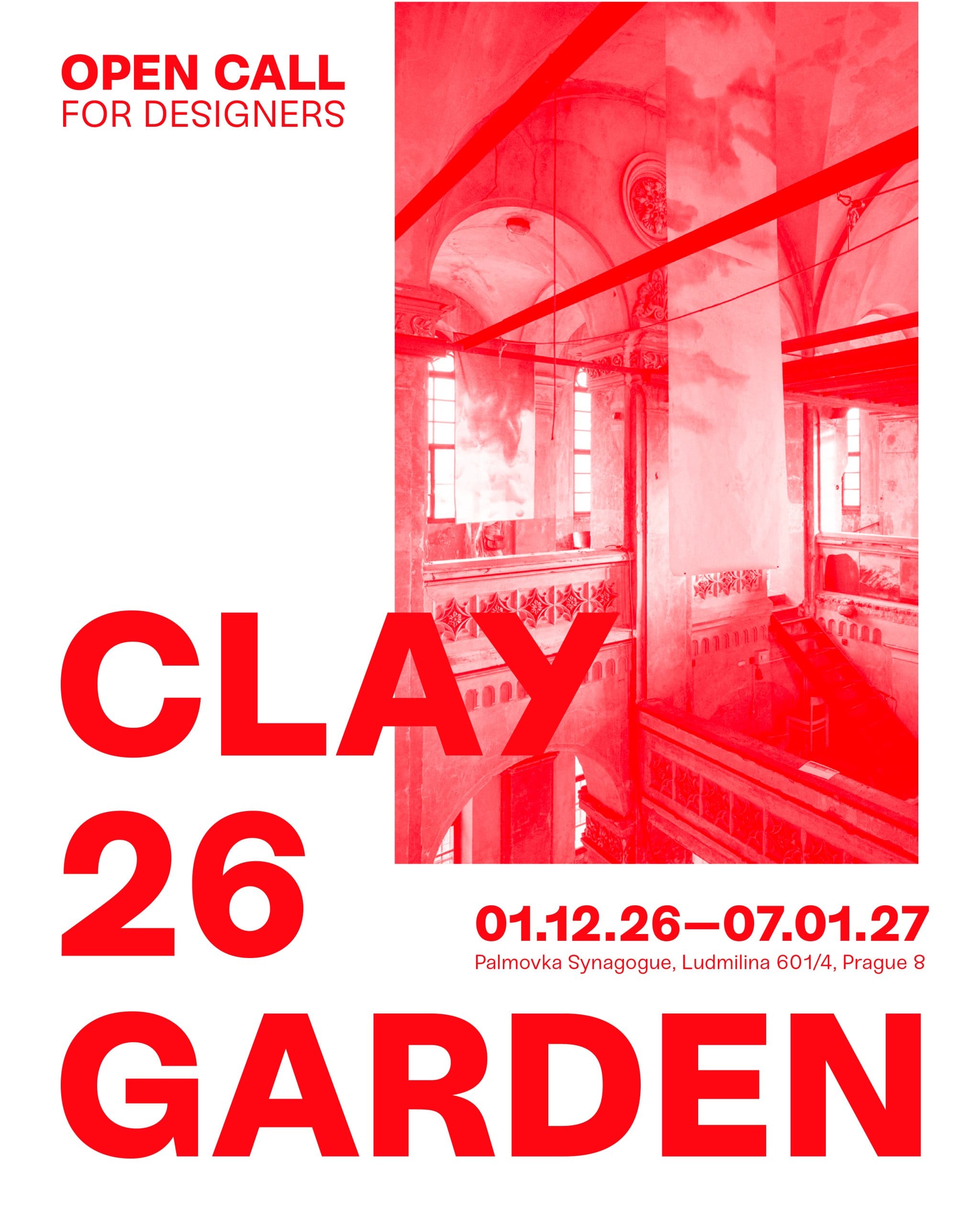 Clay Garden vznikl jako iniciativa podporující studenty a začínající autory a jeho cílem je vytvářet prostředí pro sdílení, konfrontaci a snazší vstup do profesionálního designérského kontextu. Projekt se postupně formuje jako otevřený celek. Výstava je bez tématu a jednotliví vystavující a jejich díla budou vybráni na základě celkové koncepce výstavní architektury a prostoru synagogy.