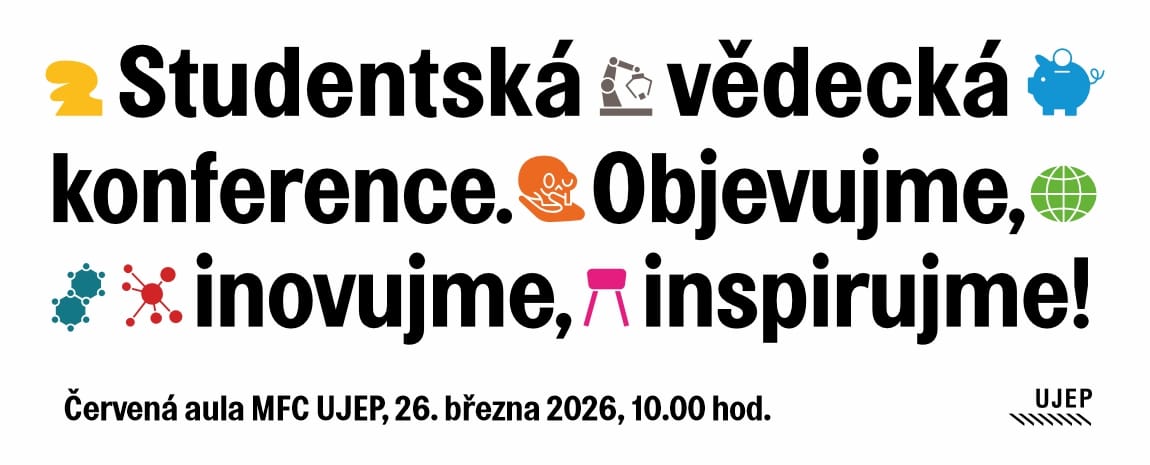 Srdečně Vás zveme na Studentskou grantovou konferenci 2026, která se koná ve čtvrtek 26. 3. 2026 od 10:00 hodin v Červené aule MFC UJEP.