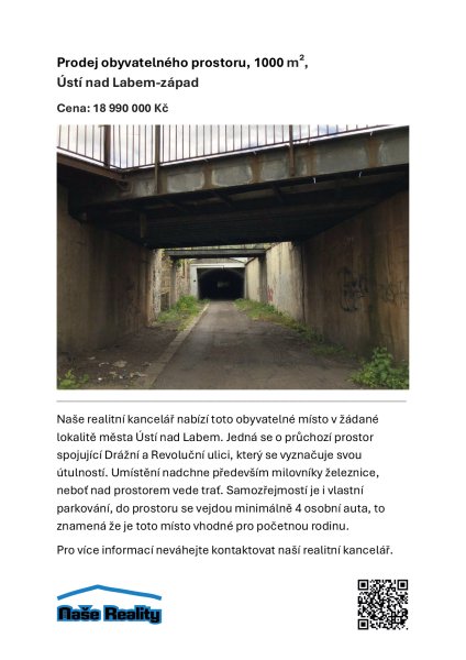 Naše Reality (2025). Projekt spočívá v poukázání na nedostupnost bydlení. V Česku máme jedno z nejnedostupnějších bydlení v Evropě. Platy nestíhají dohánět rostoucí ceny bydlení, ať už se jedná o nájem či vlastní bydlení. Pro lidi, ať už mladé nebo starší, kteří mají začít od nuly, je to silně demotivující fakt. Už dávno neplatí, že během pár let lze z práce s průměrnou výplatou našetřit na jakékoliv vlastní bydlení a být zajištěn. Teď je to tak, že během pár let práce s průměrnou výplatou lze získat hypotéku, která je břemenem na mnoho let. "Střední třída" nenápadně mizí a místo ní se objevuje propast. Bydlení se stalo komoditou, něčím, do čeho ti více movití z nás investují a samozřejmě očekávají, že se jim investice mnohonásobně vrátí. Investice se jim vrací často na úkor těch reálně chudých, těch, co nemají na výběr, potažmo na úkor státu, který poskytuje příspěvky na bydlení. Tito pronajímatelé nabízí bydlení v nevhodných podmínkách v kombinaci s vysokými náklady na bydlení. Pro tento jev existuje označení "obchod s chudobou". V jiných případech tito více movití, ať už jednotlivci nebo velké společnosti, skupují nemovitosti ke zhodnocení peněz a poté nemovitosti nechávají prázdné, což je nežádoucí ve společnosti, která se potýká s bezdomovectvím, nedostatkem sociálních a obecních bytů, a funguje bez regulace gentrifikujících developerských projektů, které jsou pouze pro ty reálně bohaté. Pro privatizaci a pro zisk mnozí zapomněli, že bydlení je základní lidská potřeba. Projekt byl prezentován ve veřejném prostoru v Chomutově, Ústí nad Labem a Děčíně.